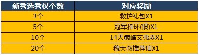 【活动内容】:此周周日(7月1日)晚系统兑换新秀选秀权个数达到指定数可获得相应奖励(6月26日前获得的新秀选秀权不计入)