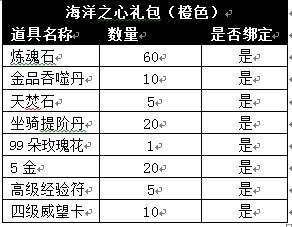 “海洋之心包”包括:(以下道具随机开出其中一种):