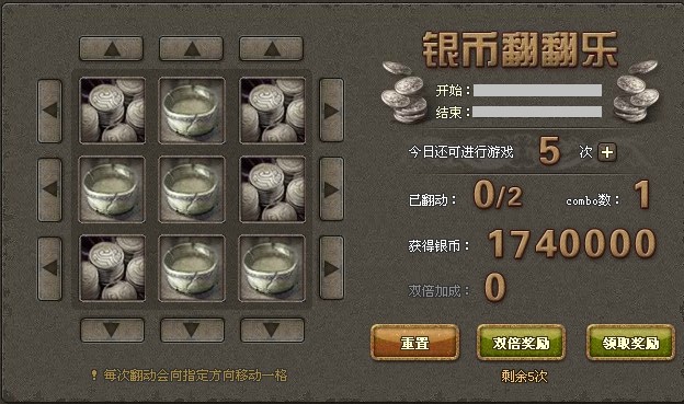 4、在九宫格内只要横、竖、斜相同,即可获得银币奖励,combo越多奖励越多。