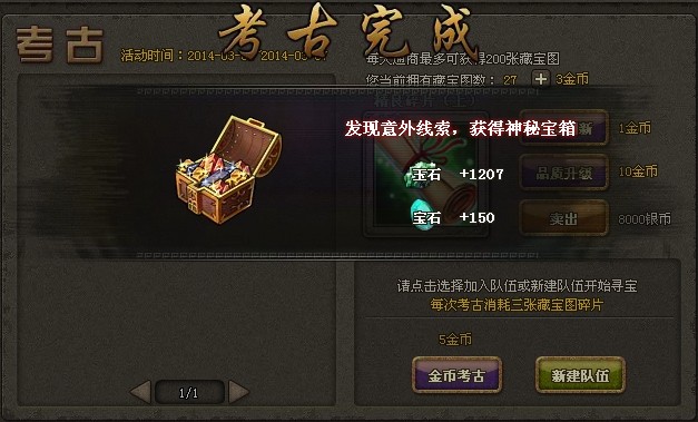 3)     玩家可以花费金币单独考古,藏宝图碎片视为同一等级。