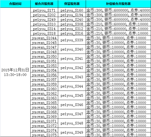 届时将按照计划对服务器进行合并。请玩家仔细阅读以下合线规则,维护当日请提前下线,以免造成不必要的损失。