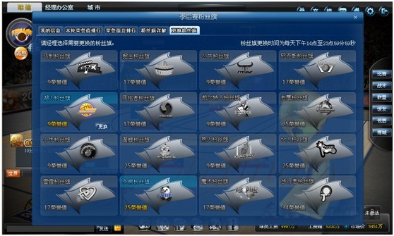 如果球队不满意现所持有的粉丝旗,可在商场购买“粉丝旗变更申请券”道具,重新选择粉丝旗;