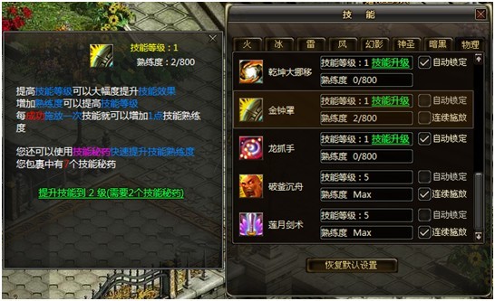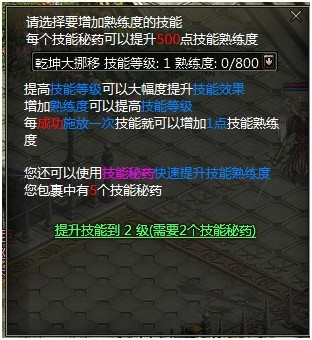 点击上图中的“技能提升到2级(需要2个技能秘药)”即可直接提升到2级。