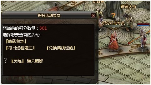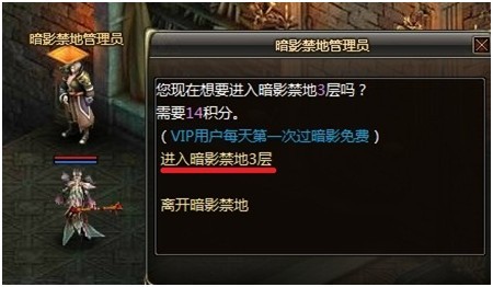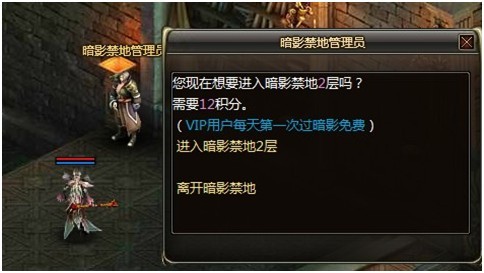 在大殿的一角就是“暗影禁地管理员”。现在花费12积分开始进入“暗影禁地2层”