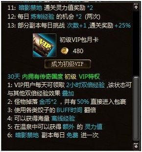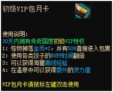 初级VIP特权概念:使用初级VIP包月卡,即可拥有初级VIP权限