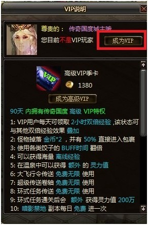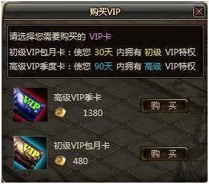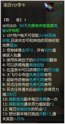 新增道具:高级VIP季卡   商城售价:1380元宝 道具说明: