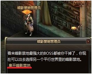 点击“暗影禁地管理员”会弹出如下面板,只要我们点击“离开暗影禁地”就可以离开了。
