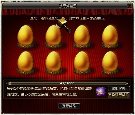 在砸蛋界面上可以直接更换梦想奖励装备